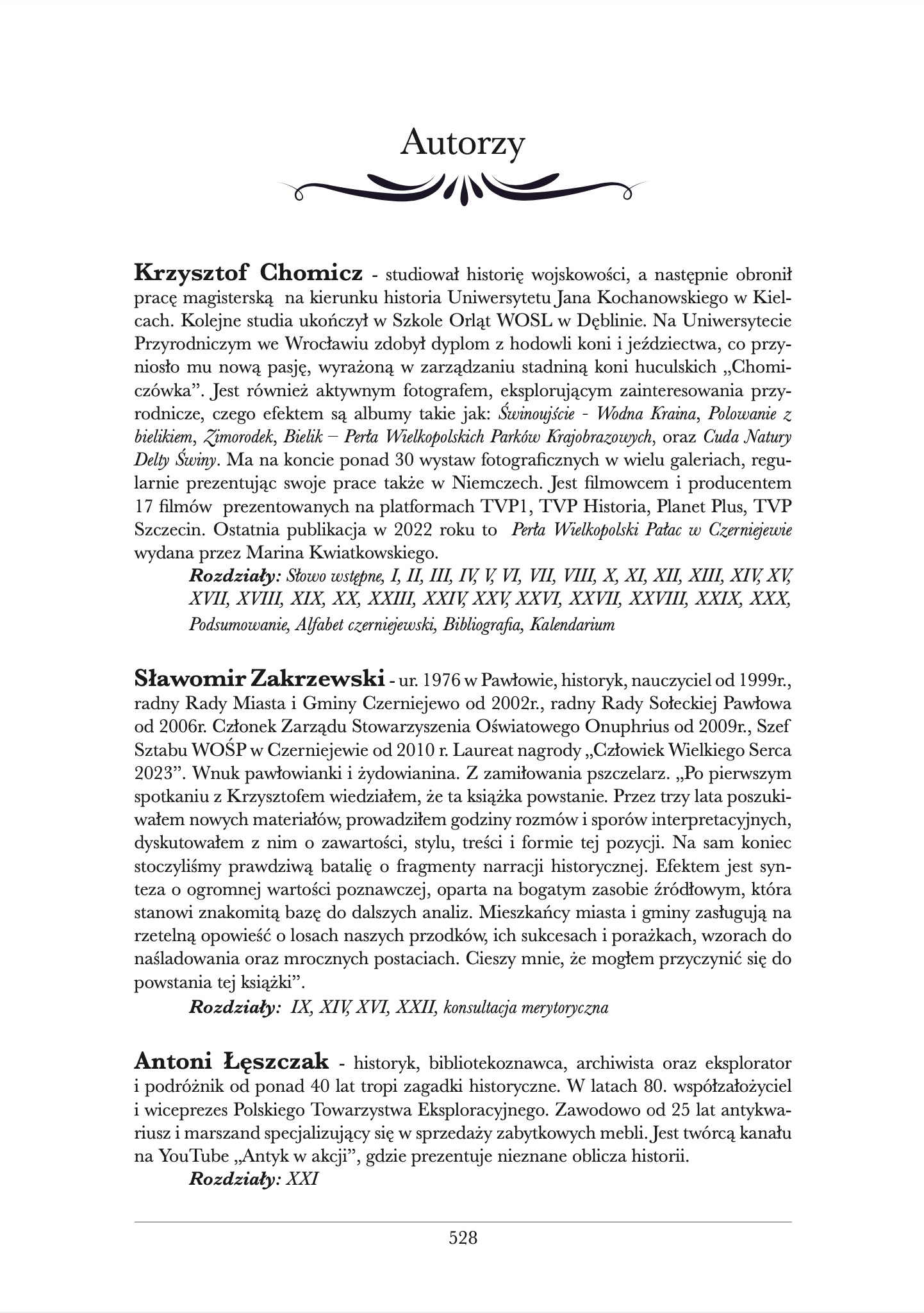Historia Czerniejewa to niezwykła podróż w czasie, która odkrywa przed czytelnikiem zapomniane losy tego urokliwego miasta. Poznaj fascynującą historię jego właścicieli – od pierwszych średniowiecznych panów, przez wpływowe szlacheckie rody, aż po czasy XIX-wiecznych przemian, kiedy to miasto stawało się świadkiem rozwoju. Dowiedz się, jak na losy Czerniejewa wpływały społeczności żydowskie i niemieckie, które współtworzyły jego tożsamość. Poznaj również bohaterów powstania wielkopolskiego, którzy walczyli o wolność na ulicach wielkopolskich miast, wpisując miasto na karty polskiej historii. Ostatnim symbolem tej historii jest majestatyczny pałac – świadek bogatej przeszłości i przemian. Oparta na solidnych badaniach, ale napisana przystępnym językiem książka przenosi w świat przeszłości, wciąż obecny w murach zabytkowych budynków, zmieniającym się rynku i w kościele św. Idziego. To lektura dla każdego, kto pragnie odkryć bogatą historię lokalną i zrozumieć, jak wielkie wydarzenia – od wojen szwedzkich, przez powstania narodowe, aż po powstanie wielkopolskie – wpłynęły na mieszkańców Czerniejewa i okolic.